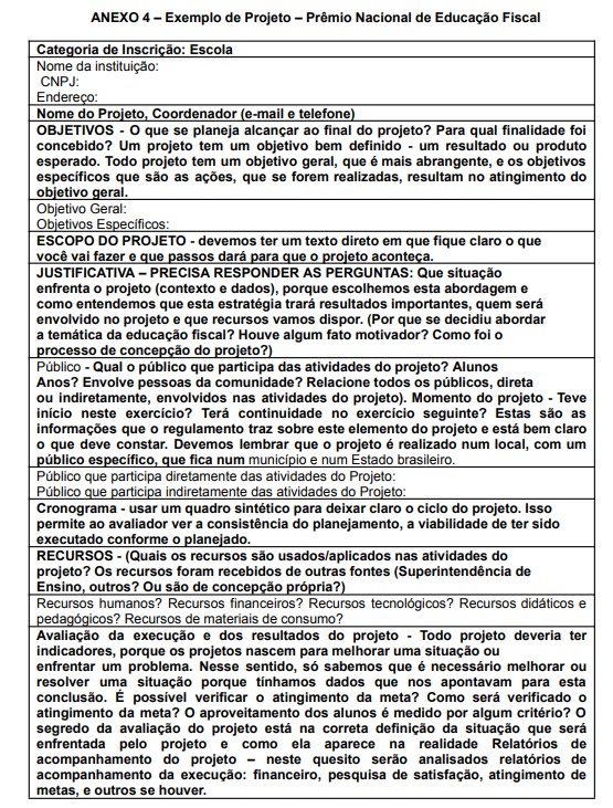 O projeto será desenvolvido entre os meses de fevereiro e outubro e visa instigar as escolas do município a desenvolverem atividades com a temática “Educação Fiscal”, de forma transversal, nas diferentes etapas de ensino, por meio de conscientização da função social dos tributos, compreensão do orçamento público e funcionamento do controle social para assegurar os direitos sociais constitucionais de educação, saúde, moradia, segurança, alimentação, transporte, lazer, previdência social, proteção à infância e a assistência aos desamparados.
